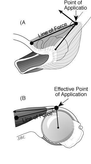 Throughout this discussion, the lever arms have been described as the distance between the point of action of the muscle force and the center of rotation. In order for torques to be realized, the humerus must rotate around a stable center. This is why we have placed such emphasis on the mechanisms for centering of the head in the section on Stability. Without this precise centering, the effectiveness of the muscle contractions would be lost.
