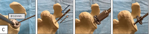 (a) for soft bone the glenoid is reamed over a 2.5 mm drill (without using a tap) followed by insertion of the baseplate in the untapped bone